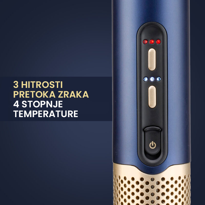 Na voljo so tri stopnje pretoka zraka in štiri stopnje temperature, kar omogoča izbiro različnih kombinacij oblikovanja za vse tipe las.