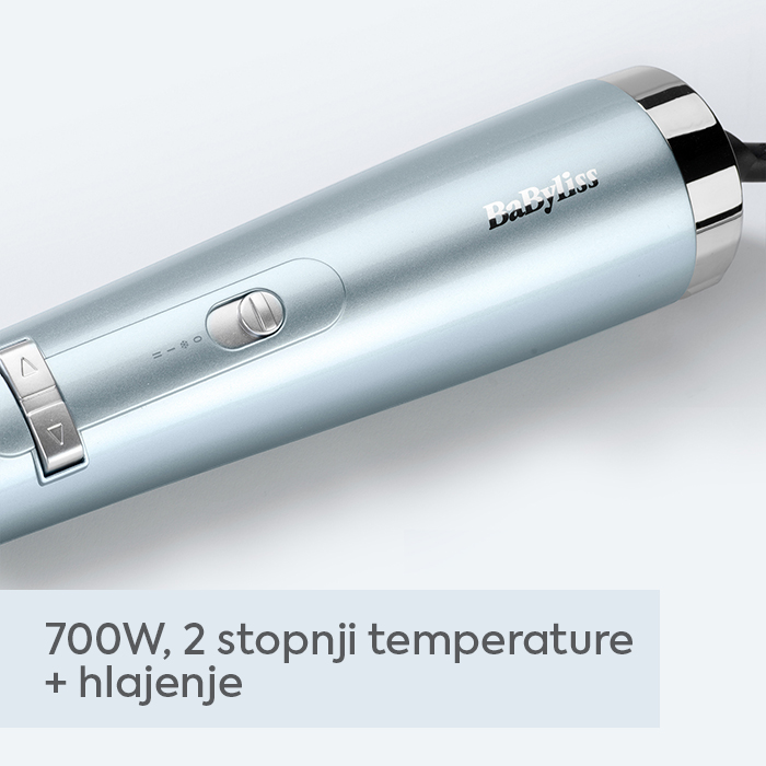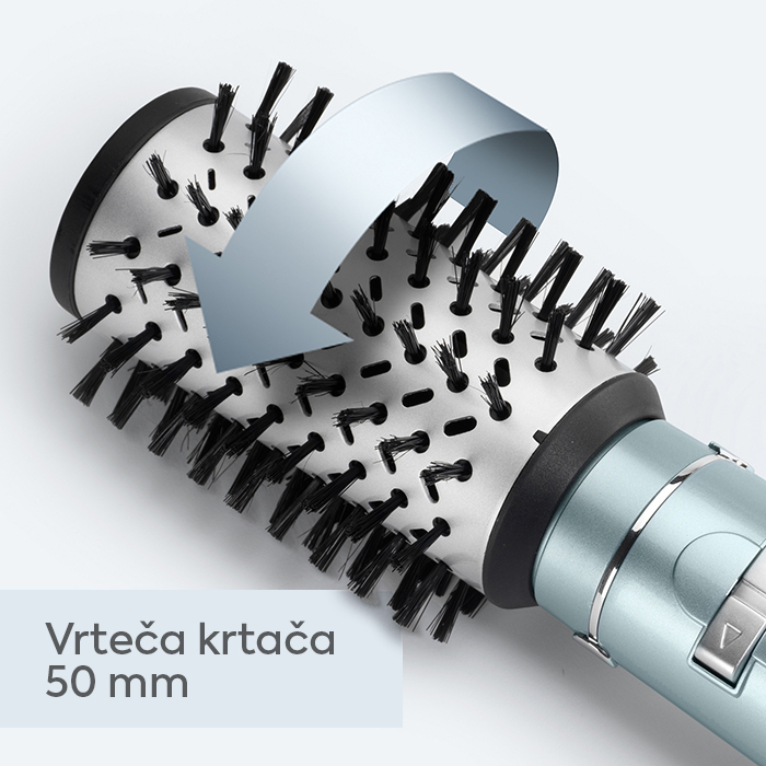 Z dvema smerema vrtenja glave krtače imate popoln nadzor nad oblikovanjem las. Ima 2 temperaturni stopnji in gumb za hladen zrak, ki je odgovoren za fiksiranje pričeske.