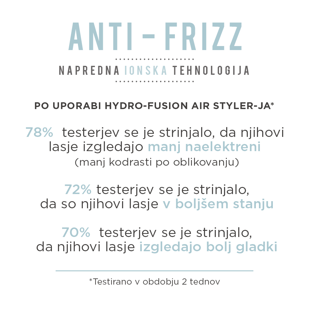 Vrtljiva krtača za lase Hydro-Fusion je krtača na vroč zrak z veliko 50 mm keramično krtačo, ki suši in oblikuje lase v enem potegu.