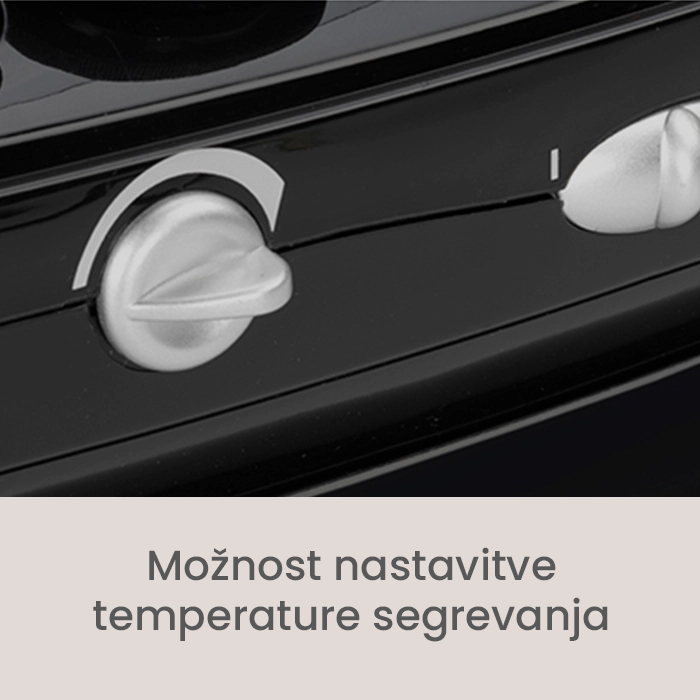 Z obračanjem gumba nastavite želeno temperaturo glede na vaš tip las. Eden od kodralnikov ima indikator temperature, ki spremeni barvo iz rdeče v belo in vas obvesti, ko je dosežena optimalna temperatura. Pri kodranju las držite kodralnike za hladne robove.