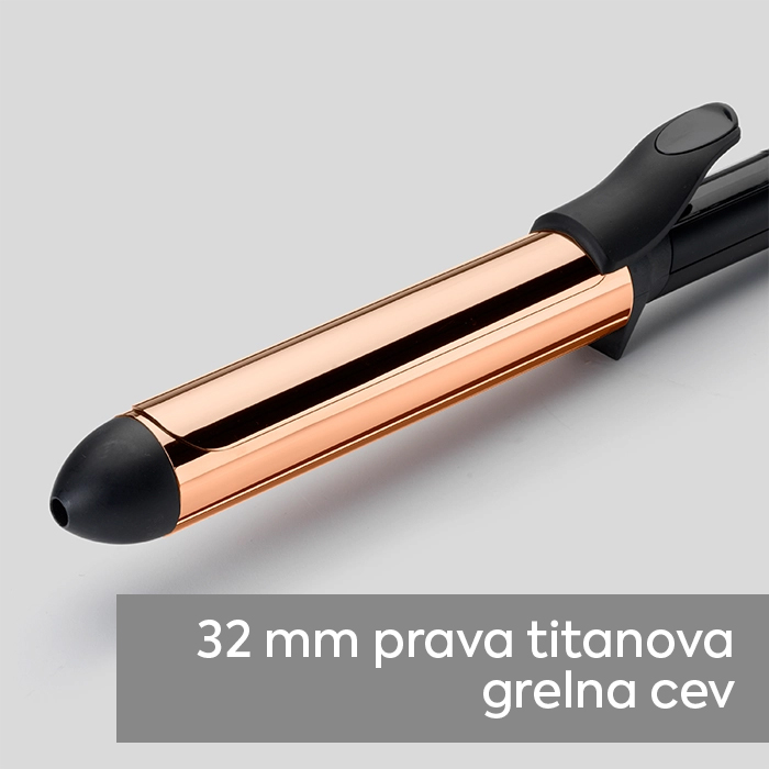 Izjemno dolga grelna cev je odlična rešitev za dame z dolgimi lasmi. Zdaj lahko preprosto ovijete celoten pramen vzdolž grelne cevi s premerom 32 mm in dobite popolne in sijoče kodre.