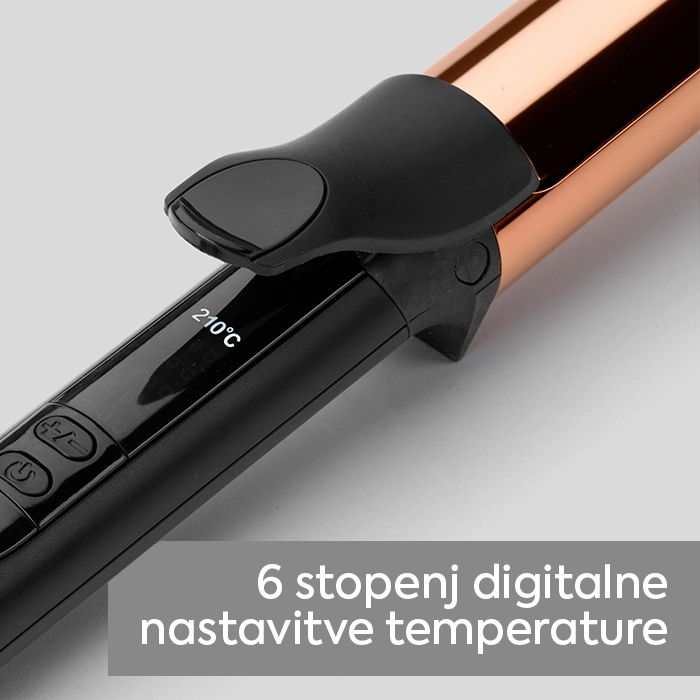 Na voljo imate 6 stopenj digitalne nastavitve temperature od 160 °C do 210 °C. Izberite temperaturno stopnjo, ki najbolj ustreza vašemu tipu las.