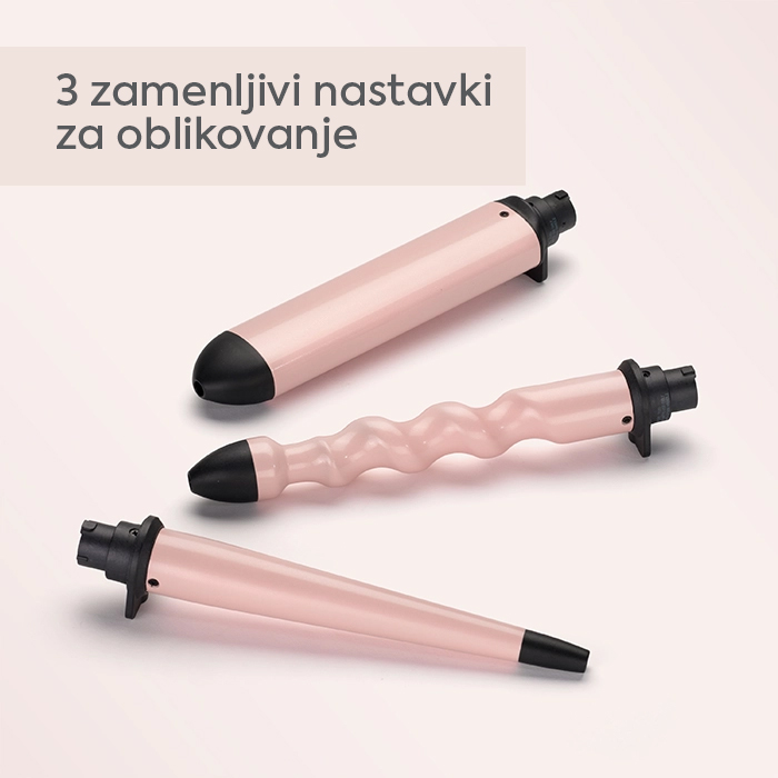 Ne glede na to, ali želite definirane kodre, sproščene valove ali morske valove, je vse mogoče s to napravo, ki je opremljena s 3 zamenljivimi nastavki – za vsak stil!